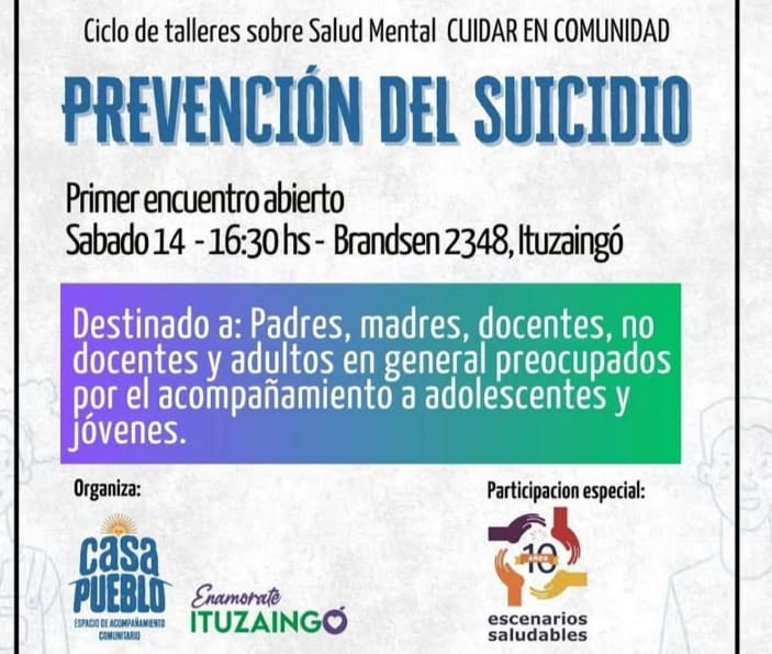 El primer encuentro de prevención del suicidio se llevará a cabo este fin de semana, en Casa Pueblo. Iara Amado, … Sigue leyendo Ituzaingó: se brindará un ciclo de talleres sobre salud mental