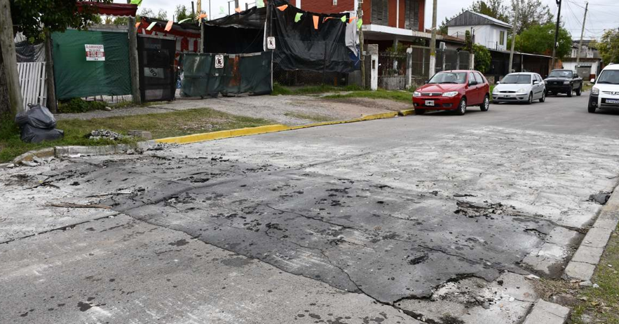 Reconstruyen con hormigón una importante calle de Merlo