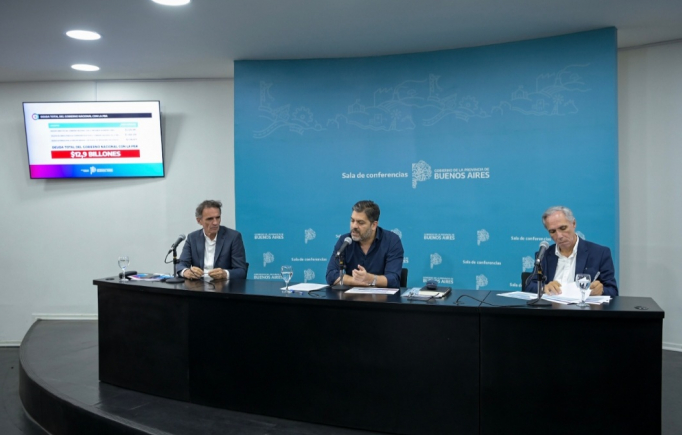 El ministro de Gobierno de la Provincia de Buenos Aires, Carlos Bianco, brindó la habitual conferencia de prensa de los lunes junto al ministro de Infraestructura y Servicios Públicos, Gabriel Katopodis, y al presidente de AUBASA, José Arteaga. Allí se refirió a las deudas que el Gobierno nacional tiene con la Provincia de Buenos Aires y afirmó: “El monto total de las deudas directas del Gobierno nacional con la Provincia es de casi 13 billones de pesos”. Por otra parte, los funcionarios señalaron las desventajas del acuerdo comercial entre Argentina y Estados Unidos anunciado por el presidente Javier Milei y repasaron distintas iniciativas de las carteras que conducen.