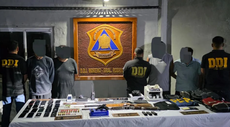 Durante los allanamientos se secuestraron armas de fuego, municiones, teléfonos celulares y credenciales policiales apócrifas, además de un chaleco con insignias falsas. Los detenidos, identificados como Ramón Antonio Segovia (53), Sergio Gastón Fernández (39), Lucas Tomás Plastina (29), Rubén Omar Galván (52) y Federico Eduardo Lescano (30), quedaron a disposición de la UFI N°7 del Departamento Judicial Moreno, mientras continúa la búsqueda de los dos prófugos vinculados al hecho.
