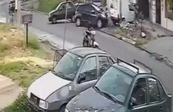 En su recorrido, el rodado impactó contra la parte trasera de un Chevrolet Corsa violeta que estaba detenido y, producto del golpe, embistió a dos hombres que descargaban objetos del baúl. La violencia del choque sorprendió a los presentes, aunque en un primer momento no parecía de consecuencias fatales.